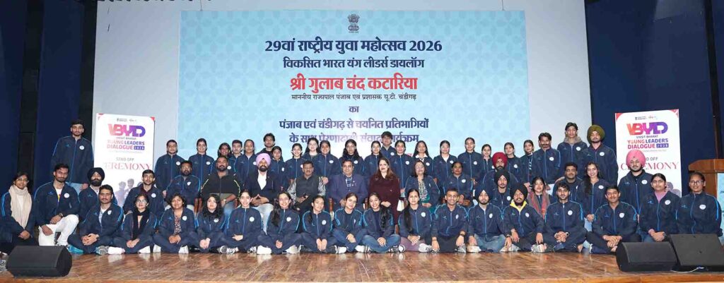 Tags: Administrator ChandigarhBharat Mandapam New DelhiChandigarh youth contingentCultural track NYFGovernor of PunjabGulab Chand KatariaLeadership dialogue VBYLDNational Youth Festival 2026Punjab youth contingentRaj Bhavan ChandigarhSports Department Chandigarh AdministrationViksit Bharat @2047Viksit Bharat Young Leaders DialogueYouth empowerment India